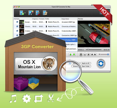 Tipard 3GP Converter for Mac provides perfect convert functions for Mac users. It supports to convert almost all video formats to 3GP format, like MP4, MPG, MOD, TOD, MOV, MKV, WMV, MPEG-1/2, VOB, MOV, MPV, FLV, and HD videos (HD TS, HD MTS, HD M2TS, HD WMV, etc). Also this 3GP Converter for Mac gives you a hand to convert video to audio formats, or convert audio files to audio formats, like AAC, AC3, AIFF, AMR, AU, FLAC, MP3, M4A, MP2, OGG, WAV, WMA.
